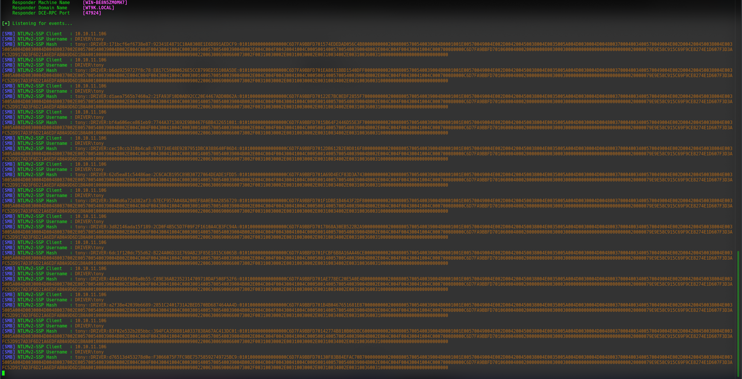 I created a payload like the example given on the site I found started responder and got a few hits. Now we know the username and maybe the password if we manage to crack it. We know from the responder output that it is a NTLM hash so lets put Hashcat on it and see what we'll get.