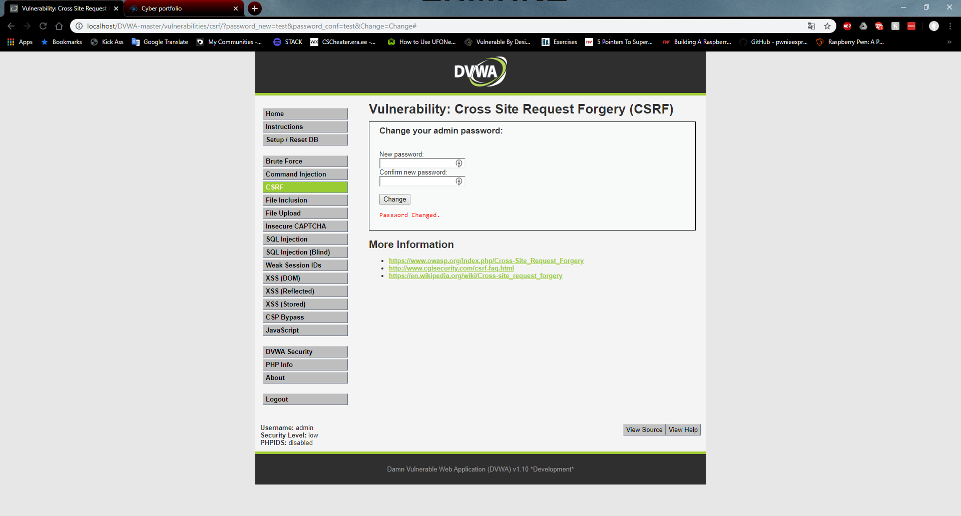 Now if the user tries to login he can't because the password is changed, and I can log into his account and exploit it as much as I want.