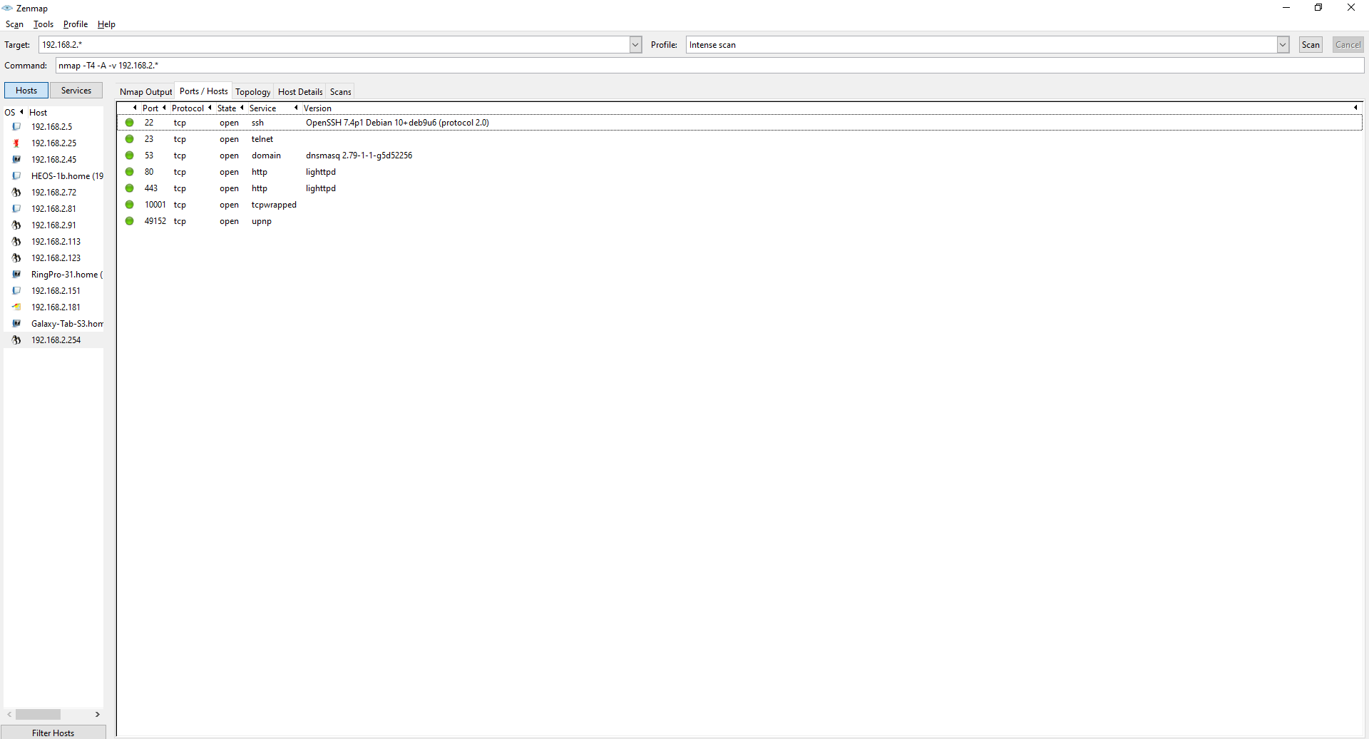 Using the before mentioned topology graph I noticed that the router has a lot of open ports as well. Getting into a network's router could give me more access to other parts of the network.