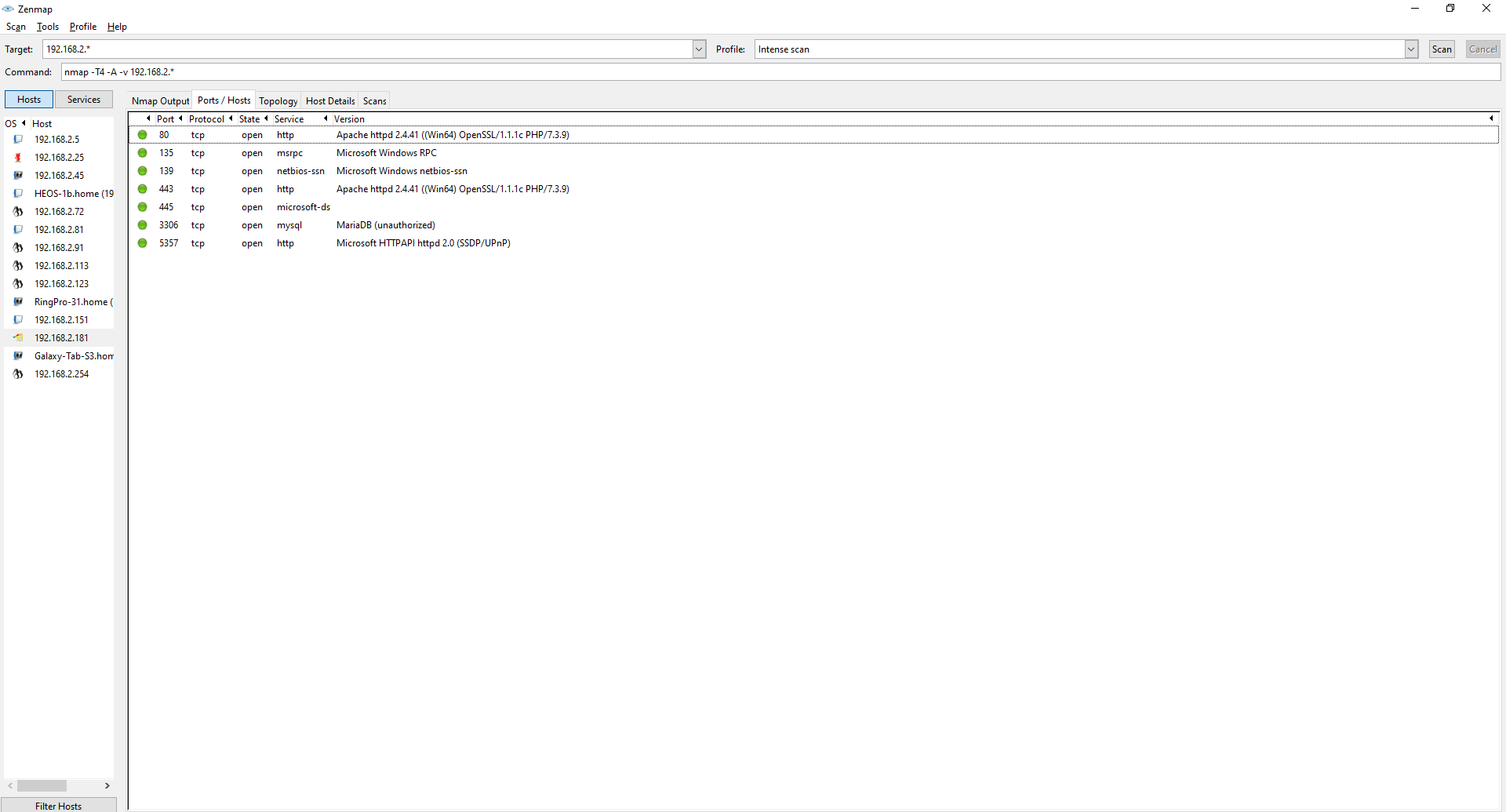 There are a few different open ports on this machine then other regular desktops. Like a MariaDB which I could try to access or take a look at the webserver. The Windows RPC protocol is running on an open port which I can utilize to get in because there are some known exploits for that.