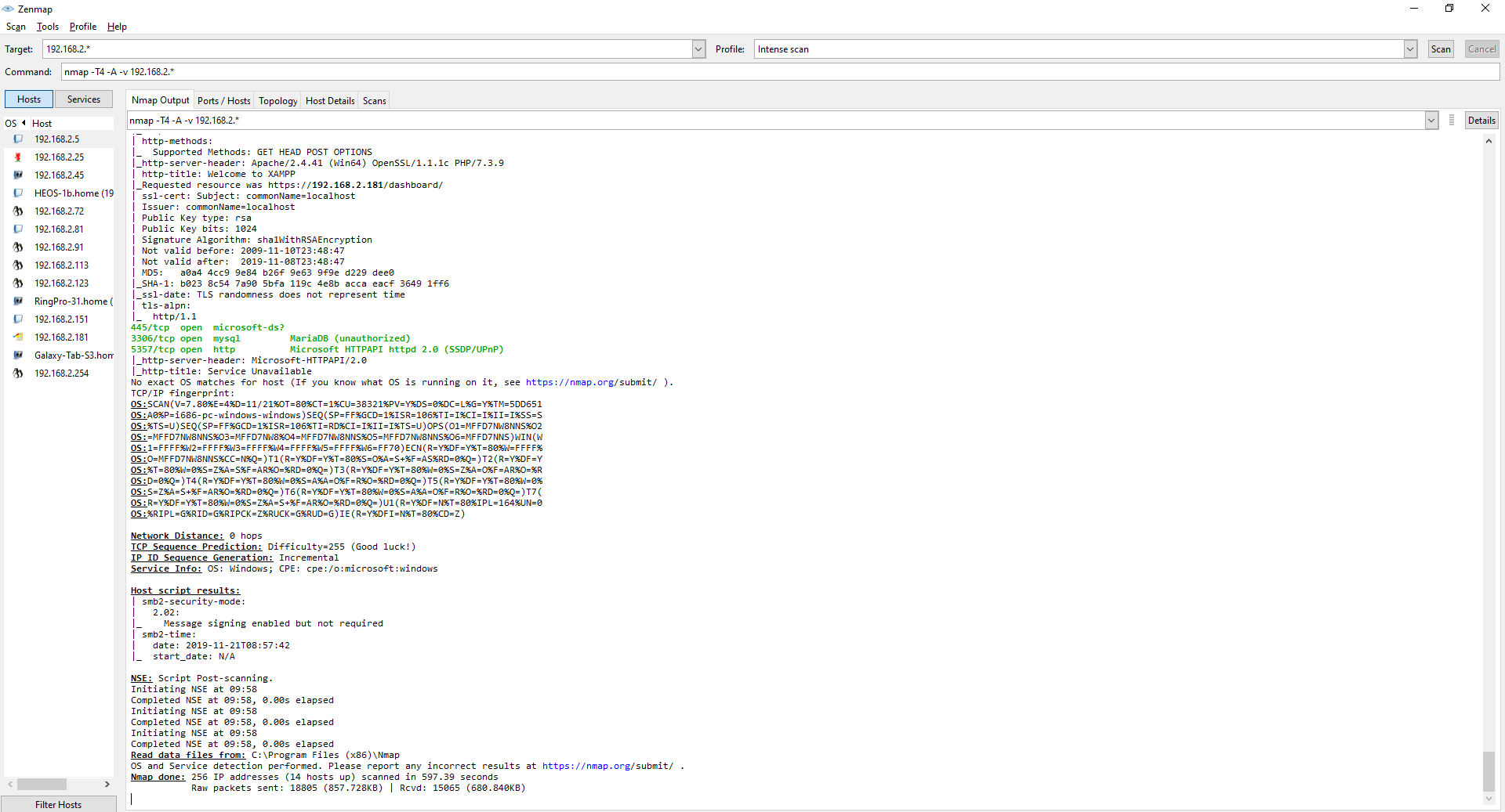 To create a demo for this a made up a scenario. The scenario is that I got VPN access to a place I want to hack and I want to know how the network looks like. This is no actual hack but mere a VPN tunnel to my own home.