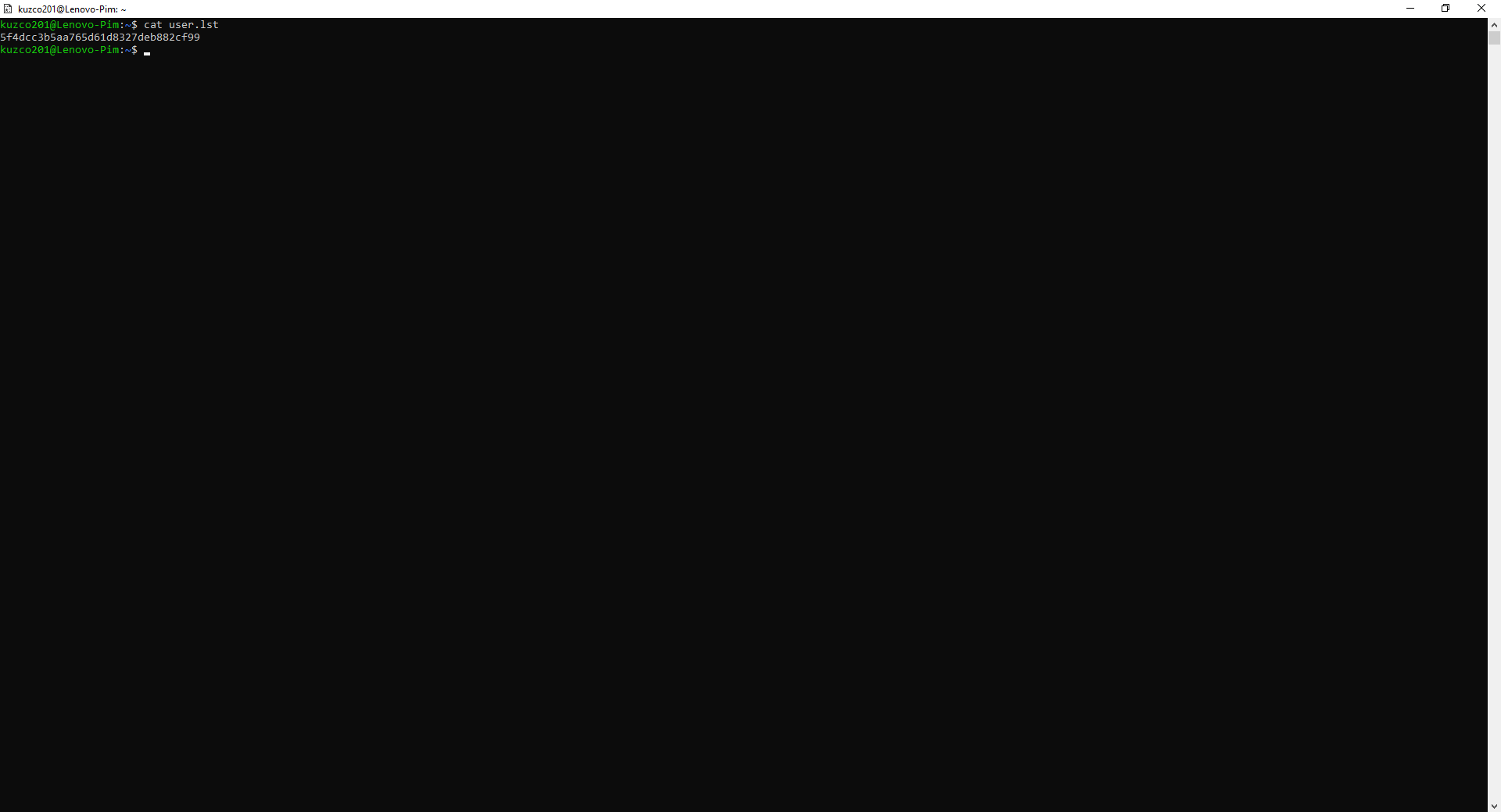 I placed the has in a file. In this case there's only one hash in there but in reality this list could contain all the hashes from a certain database.