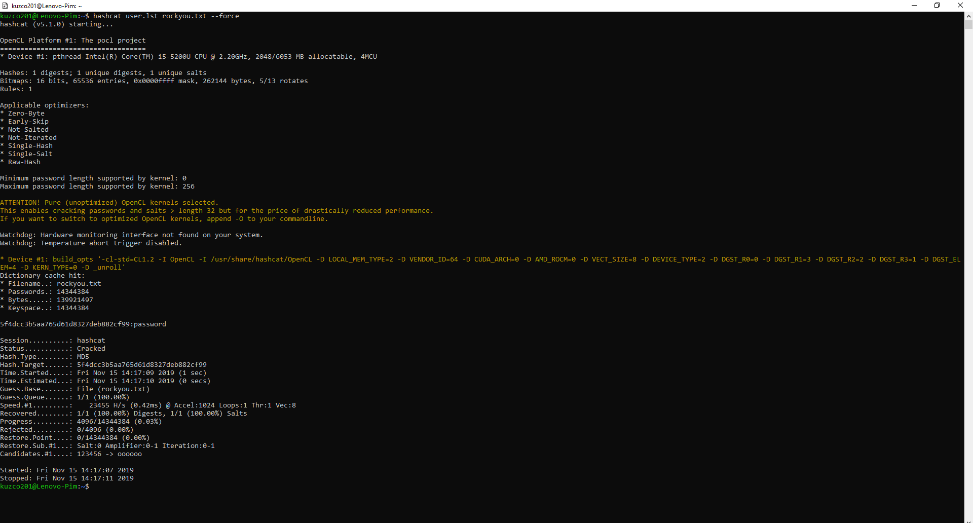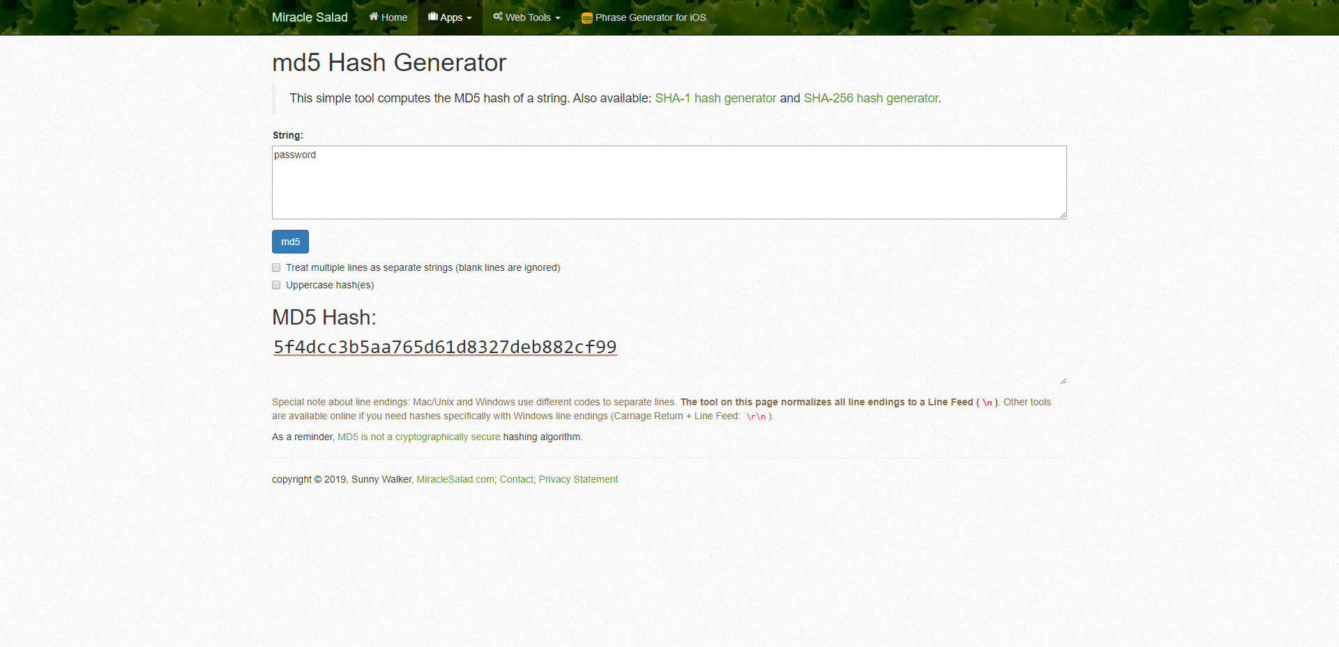 I created a small demonstration on hacking a simple MD5 hash. So I first of all created a hash for the string "password".