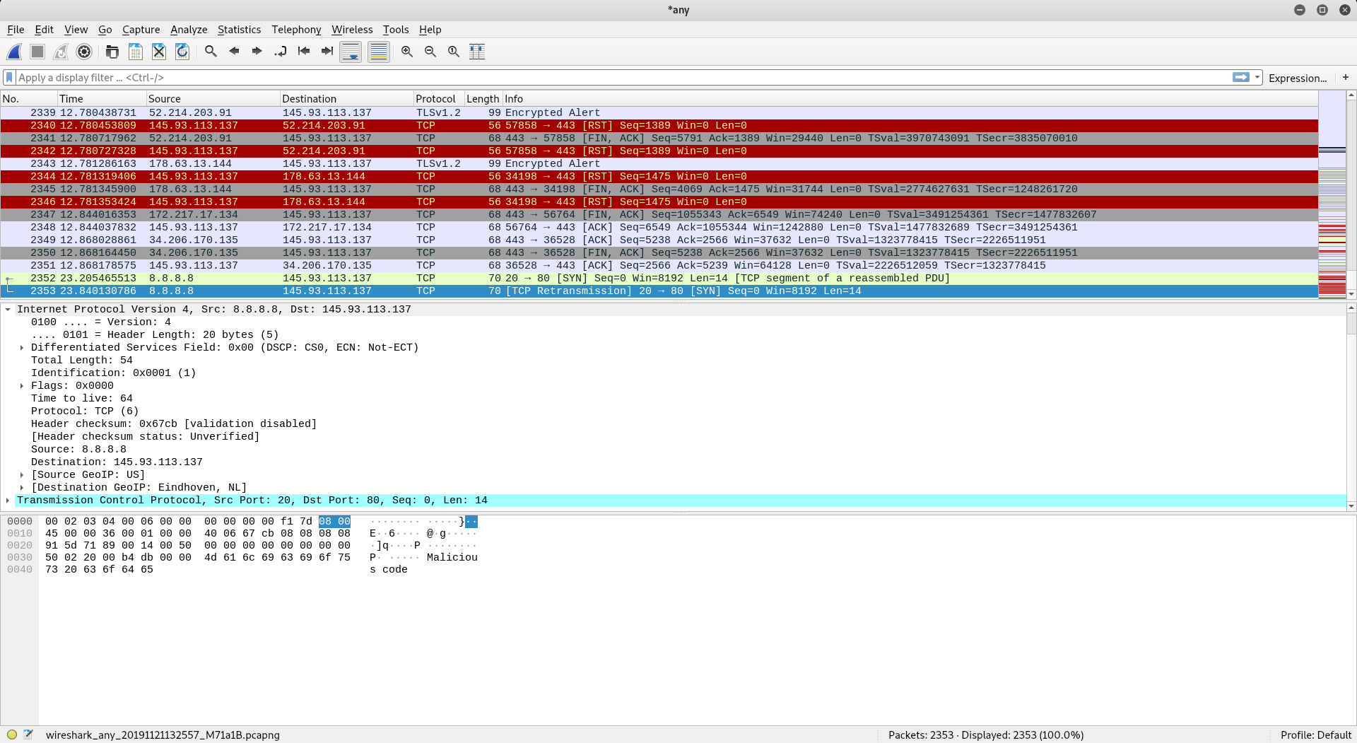 I captured the packet with Wireshark and as you can see the source address is google, but when you look in the raw my malicious code is in there.