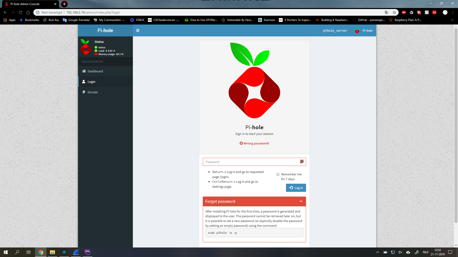 I have a "pi-hole" server running on my network that acts as my home dns server. It has a login screen for a dashboard with statistics but it is not HTTPS secured. So I tried catching the password with Wireshark while logging in.
